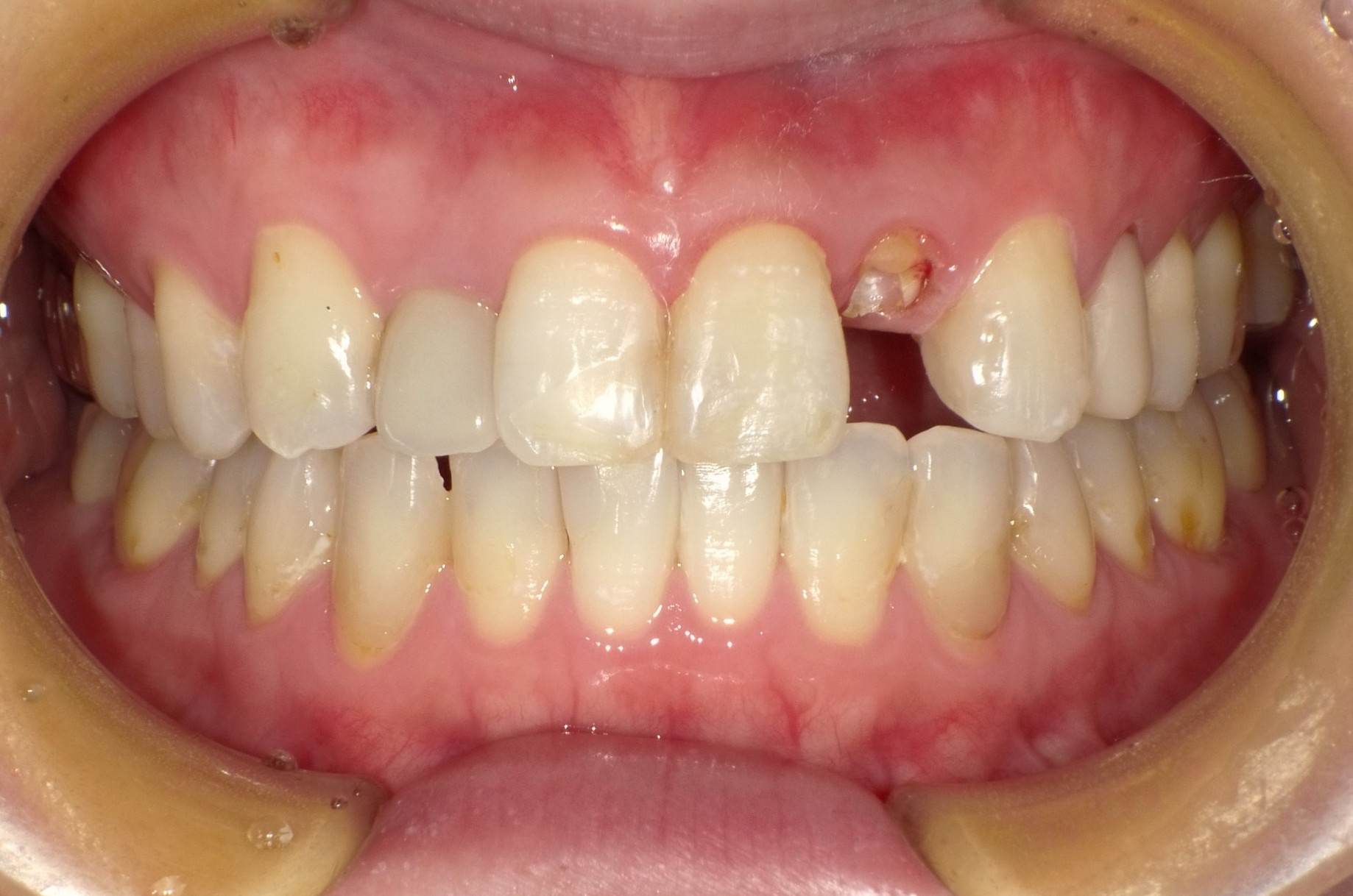 歯の破折により保存不可の歯を、挺出して保存した審美症例